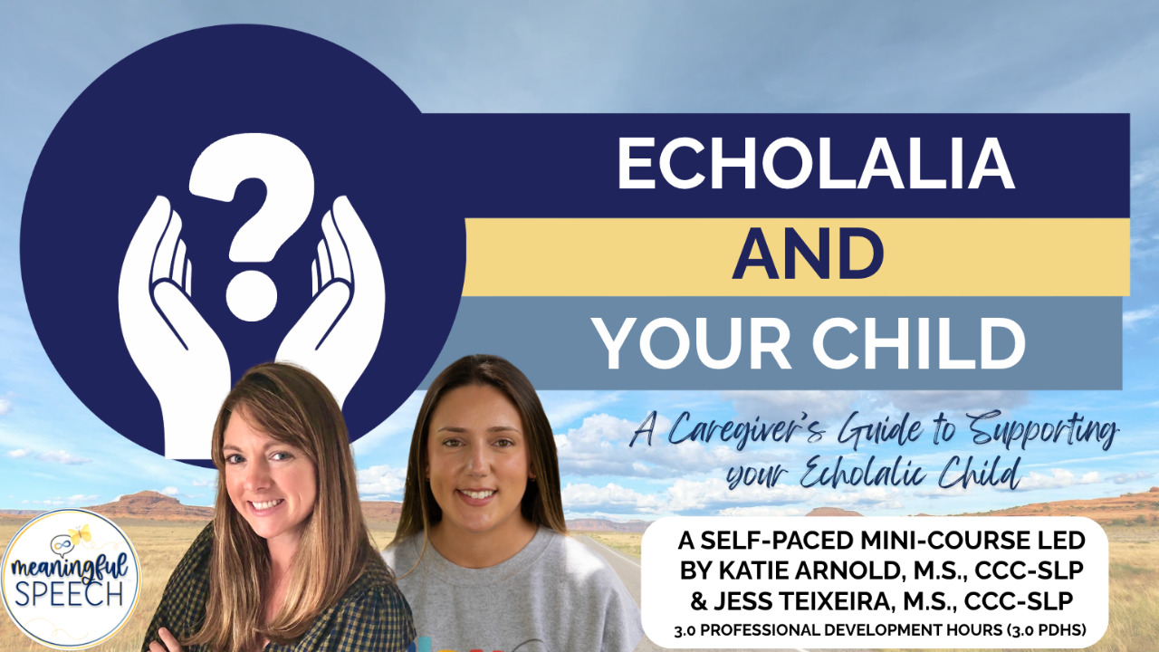 Join Meaningful Speech team members Katie Arnold & Jess Teixeira for a nearly 3-hour, self-paced mini-course designed to bring clarity, confidence, and practical tools to those supporting gestalt language processors.