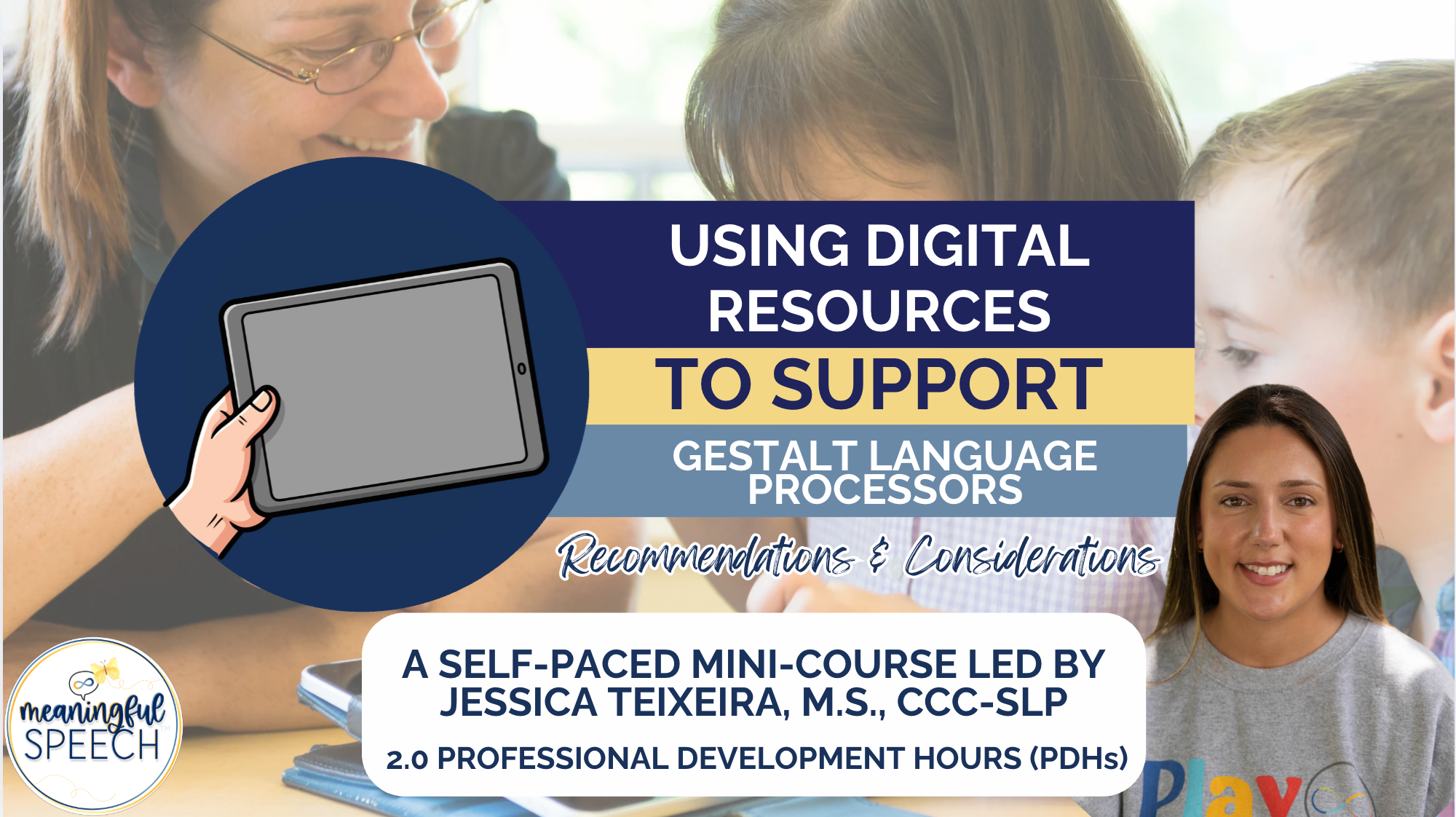 Join Meaningful Speech team member Jessica Teixeira, M.S., CCC-SLP, for a 1-hour pre-recorded webinar that will inspire you to make digital resources a meaningful tool in therapy sessions, at home, in school—anywhere!